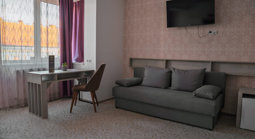 Aceasta camera este dotata cu aer conditionat, Tv cu canale prin cablu, minibar, baie privata cu cabina de dus, iar vederea din camera este spre...